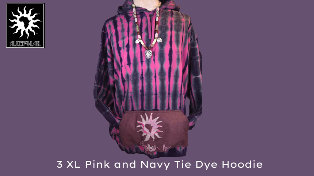 Large Alkebu-Lan Pink & Navy Tie-Dye Hoodie